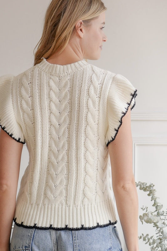 Collared Knit Short Sleeve Top With Contrast Poplin Hem