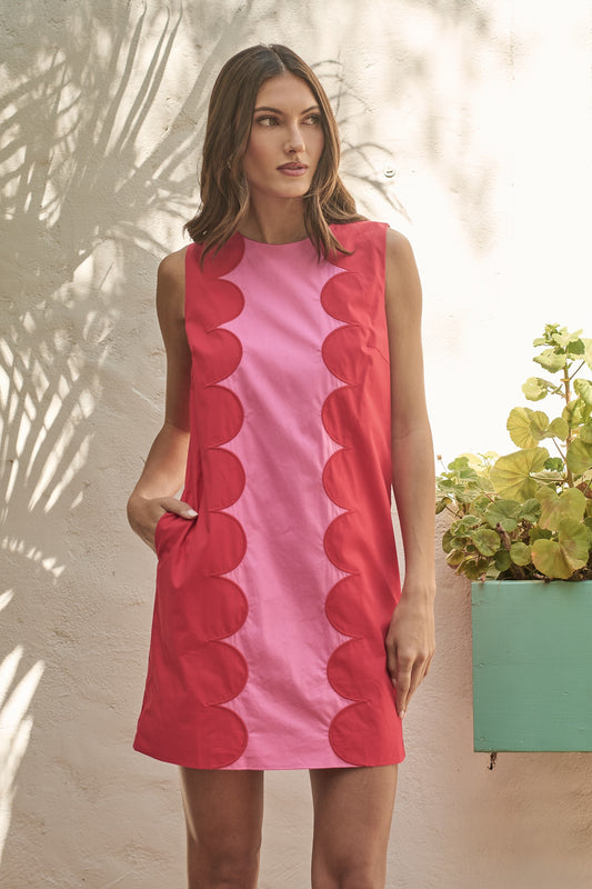 Contrast Scallop Trim Mini Dress W/ Ruffle Hem