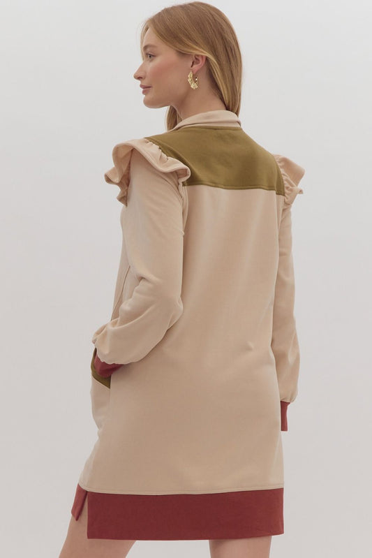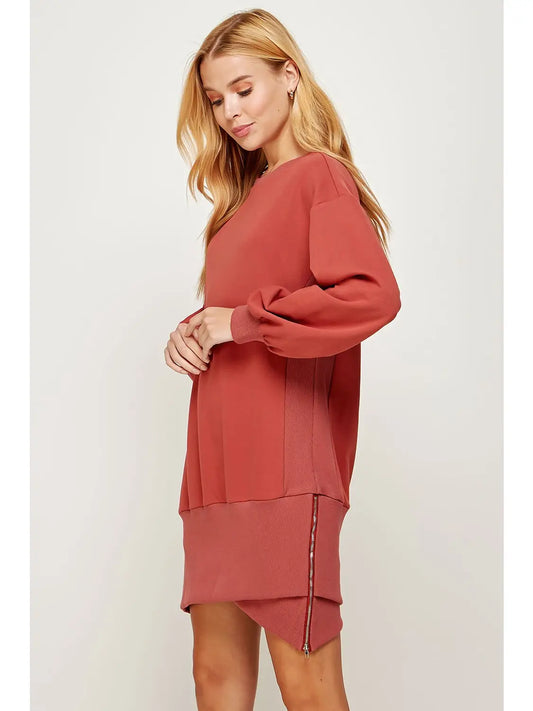 Zipper Ribbed Band Sweatshirt Mini Dress