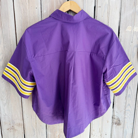 Rolled Sleeve Contrast Trim Knit Game Day Top