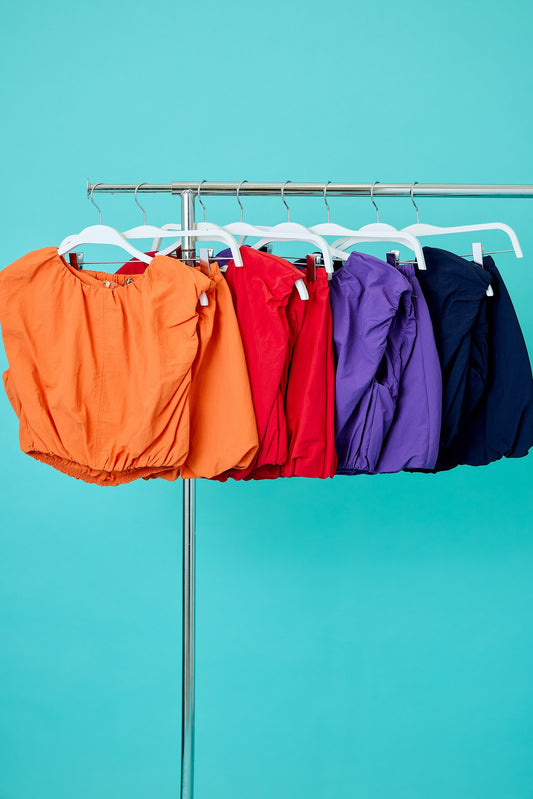 Purple Shirring Slvless Crop Top And Bubble Skirt Set