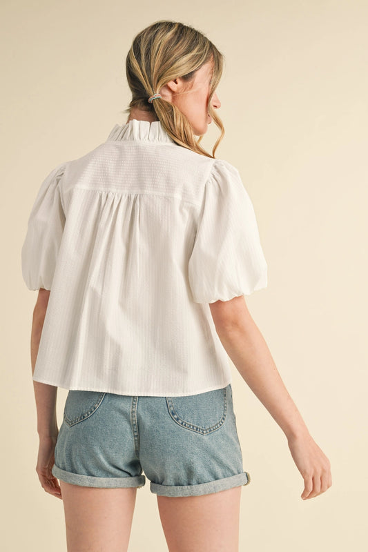 Button Down Collared Shirt With 3/4 Puff Sleeve