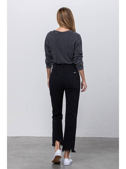 High Rise Ripped Frayed Straight Leg Jeans