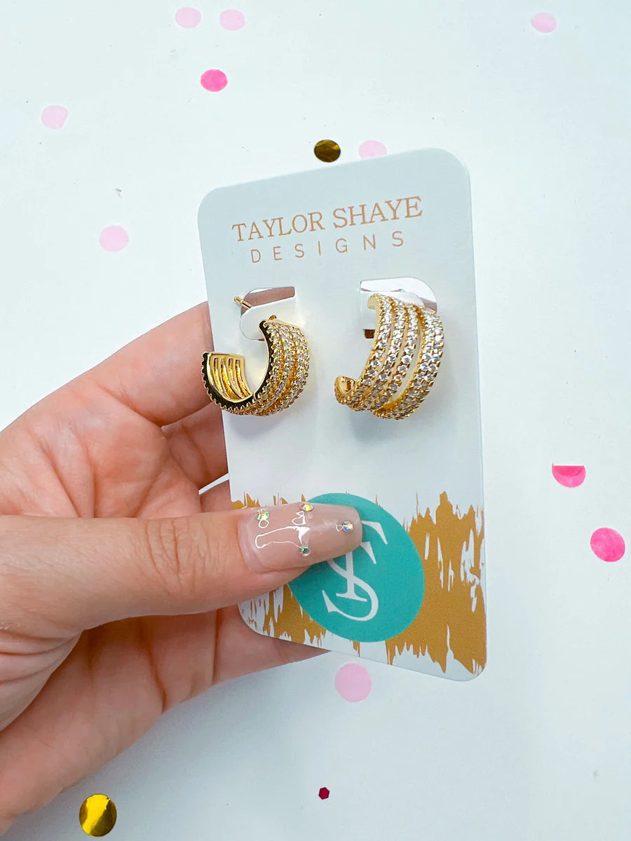 Elevate your style with the TS- Margaret Hoops, featuring gleaming gold hoops adorned with sparkling rhinestones. These earrings add a touch of refined glamour to any outfit, perfect for both everyday wear and special occasions. Lightweight and eye-catching, they offer a radiant finish that effortlessly enhances your look. Make a statement with elegance and shine in every step.